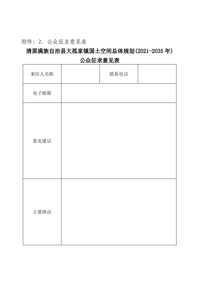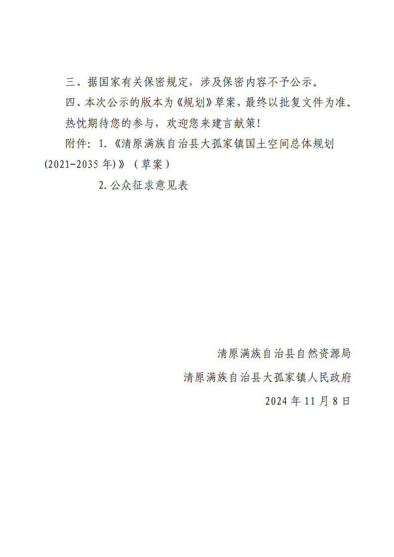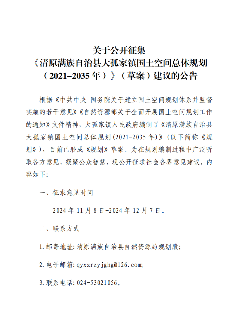 关于公开征集《清原满族自治县大孤家镇国土空间总体规划(2021-2035)》(草案)建议的公告