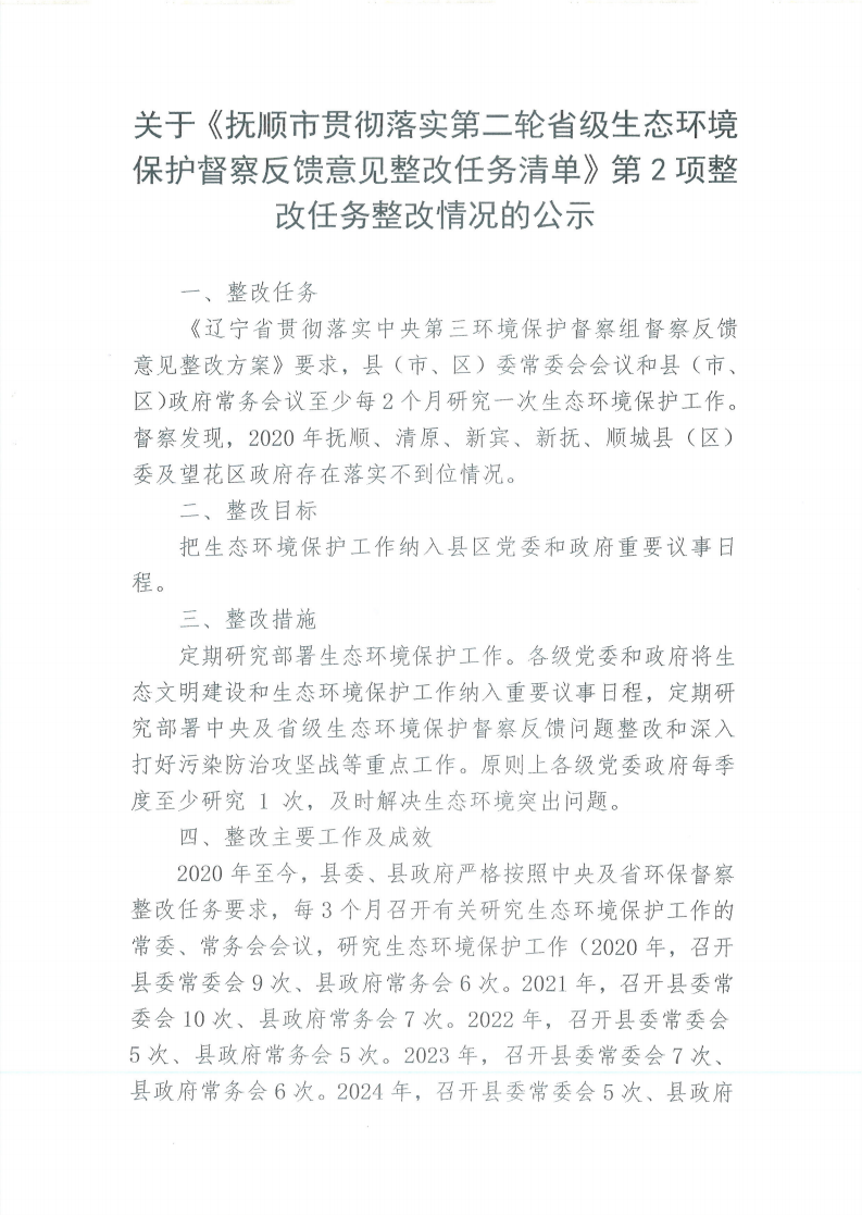 关于《抚顺市贯彻落实第二轮省级生态环境保护督察反馈意见整改任务清单》第2项整改任务整改情况的公示